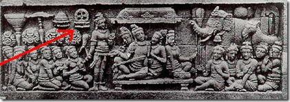 Dari beberapa peninggalan kuno di dunia yang memiliki relief menyerupai UFO atau piringan terbang, ternyata candi Borobudur termasuk salah satunya, tidak bisa dipastikan mengapa mereka membuat pola seperti itu, entah itu memang UFO yang dimaksud atau simbol lain, ada yang berpendapat bahwa simbol piringan terbang itu bisa jadi merupakan gambaran tentang 7 permata raja dalam ilmu kosmologi Budha tapi tetap saja tidak ada bukti yang sah mengenai pernyataan ini.