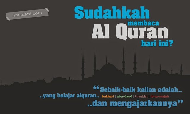 Rasulullah SAW bersabda: "Barangsiapa yang membaca satu huruf dari Alquran maka ia akan mendapat satu kebaikan dan dari satu kebaikan itu berlipat menjadi sepuluh kebaikan. Aku tidak mengatakan alif lam mim sebagai satu huruf. Akan tetapi alif satu huruf, lam satu huruf dan mim satu huruf." (HR. Bukhari).