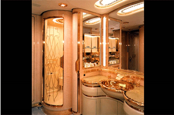 Ada 257 kamar mandi—juga masih dengan emas dan perak. Istana Sultan juga mempunyai 650 kamar suite, yang harga furnish-nya masing-masing kamar tidak kurang dari 150.000 euro.