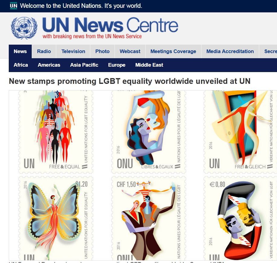 Ini fakta, bukan hoax. PBB (UN) bahkan membentuk badan khusus bernama UNFE (United Nations Free & Equality) untuk mempromosikan LGBT. Silakan klik webnya: http://www.unfe.org. PBB juga menerbitkan perangko gay.