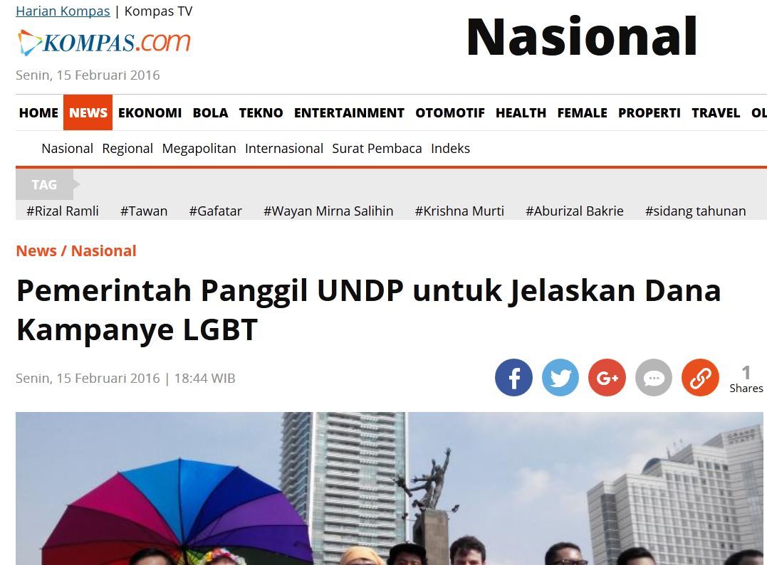 UNDP bahkan menggelontorkan uang sebesar USD 8 juta (sekitar Rp 107 M) untuk mempromosikan LGBT di Indonesia, China, Thailand dan Filipina.