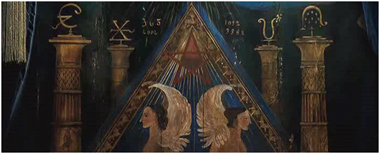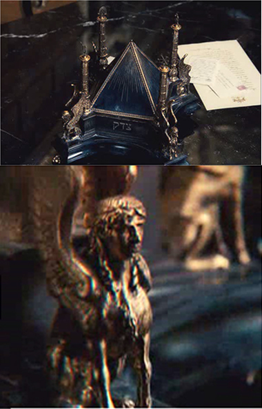 Dalam film ini, simbol Pyramid muncul berkali-kali; seperti souvenir yang terletak di meja kantor Sir Thomas dan ruang peribadatannya yang memang "berkiblat" kepada simbol Pyramid dimana Pyramid tersebut juga "dijaga" oleh Sphinx. Bedanya, Sphinx di sini terdiri dari empat unsur; yaitu berkaki singa, berekor lembu, bersayap elang, dan berkepala manusia.