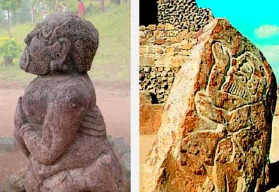 Selain itu, pahatan wajah, bentuk mata, potongan rambut, pakaian, serta perhiasan pada patung-patung di sini juga ada yang tidak mencerminkan model orang Jawa, melainkan bangsa Sumeria, Viking, Mayan, Romawi (Rum), dan Yunani. Kita mengetahui jika sampai sekarang, para sejarawan mengklaim jika peradaban Sumeria merupakan peradaban tertua yang pernah ditemukan di bumi. Ada pula patung ‘orang Sumeria’ yang digambarkan dengan wajah memelas atau ketakutan dengan posisi badan seperti orang yang menyerah atau takluk?
