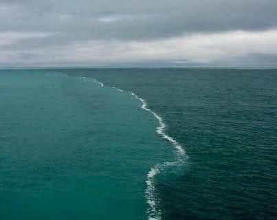 Misalnya, di antara air Laut Mediterania yang hangat dan asin dan air Samudra Atlantik yang dingin dan berkepadatan massa rendah terdapat pembatas di antara keduanya.