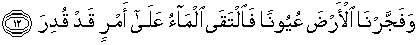 “Maka kami bukakan pintu-pintu langit dengan (menurunkan) air yang tercurah. Dan Kami jadikan bumi memancarkan mata air-mata air maka berkumpulah air-air itu untuk satu urusan yang sungguh telah ditetapkan...” (QS AL Qamar :11-12)