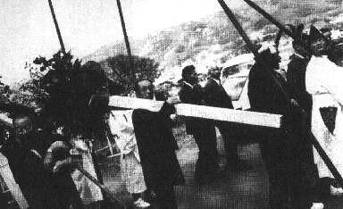 Upacara pengorbanan anak laki-laki tersebut dipertahankan hingga permulaan zaman Meiji. Masumi Sugae, seorang terpelajar Jepang dan pencatat perjalanan yang hidup di zaman Edo, lebih kurang dua abad silam, menuliskan catatan perjalanannya dan mencatat apa yang ia lihat di Suwa.