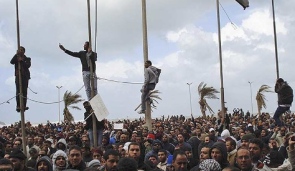 Para penentang Presiden Muammar Gadhafi menginginkan Libya seperti Tunisia dan Mesir, di mana para penguasa mereka mengundurkan diri. Muammar Gadhafi sudah berkuasa selama 42 tahun. Ini sejarah kekuasaan yang panjang oleh seorang penguasa di kawasan Afrika Utara. Sementara itu, Saif al-Islam, orang kedua sesudah Gadhafi memperingatkan, jika aksi protes tidak berhenti, maka Libya akan jatuh pada perang saudara, antara penentang pemerintah dan pendukung pemerintah