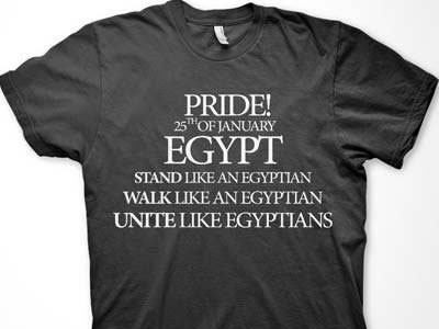 Banyak macam disain dari kaos-kaos ini, namun keseluruhan disain kaos mencerminkan dan menggambarkan semangat revolusi 25 Januari. (fq/imo)