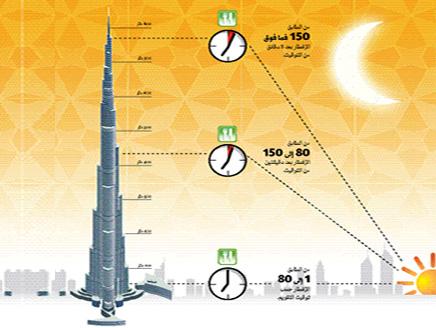 Kementrian tersebut pun memberikan kejelasan dan jadwal imsakiyyat (berbuka-bersahur) khusus bagi para penghuni Khalifa Tower. Dalam jadwal tersebut dijelaskan, jika penghuni lantai 1 sampai lantai 80 berbuka pada jam 19.00 waktu setempat, maka penguni lantai 81 sampai 150 berbuka dua menit kemudian (19.02), disusul dengan penghuni lantai 151 sampai 160, yang berbuka tiga menit berikutnya (19.05).