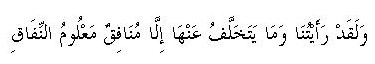 ”Dan sungguh dahulu pada masa Nabi Muhammad shollallahu ’alaih wa sallam tiada seorang tertinggal dari sholat berjama’ah kecuali orang-orang munafiq yang terang kemunafiqannya.” (HR Muslim 3/387)