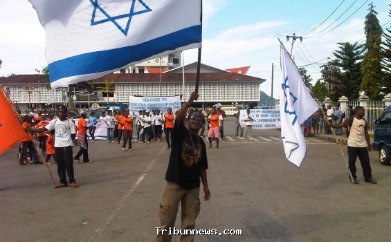 Menarik, itulah kata yang pas dilekatkan terhadap sekelompok warga Timika Papua. Tidak perlu repot mengatur perizinan seperti Unggun Dahana, sekelompok warga mampu mengibarkan bendera Zionis Israel, Jum’at, 13/05/2011, di Timika Papua.