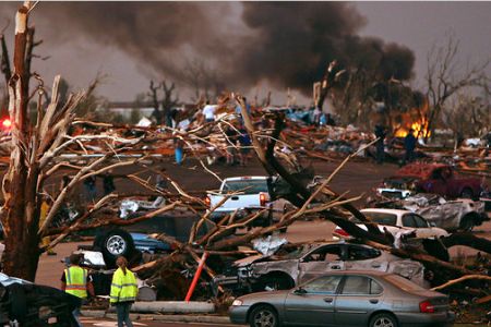 Badai tornado yang melanda Joplin menyisahkan tumpukan batu bata dan kayu di mana rumah-rumah dan sekolah pernah berdiri di sana. Mobil hancur dan saling menimpa di atas satu sama lain. Sebuah helikopter hancur di depan sebuah rumah sakit yang rusak. Kehancuran akibat tornado ini mengingatkan pada bencana tornado Tuscaloosa, Ala, bulan lalu, ketika badai tornado menewaskan lebih dari 300 orang di seluruh wilayah Selatan AS.