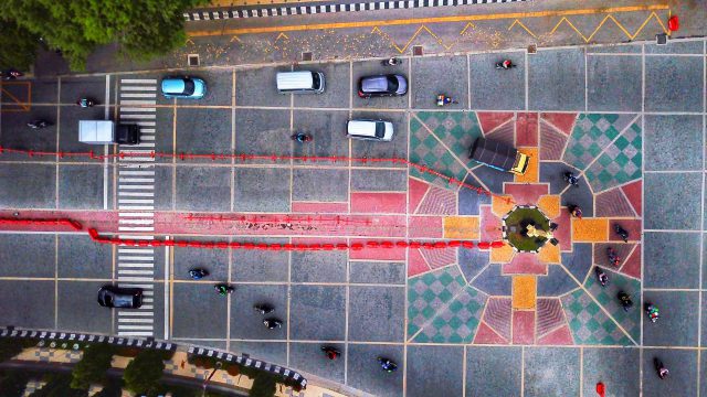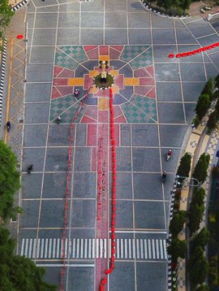 Eramuslim.com - Ada pemandangan baru didepan Balaikota Solo atau koridor Jalan Jenderal Sudirman. Pemandangan itu jika dilihat dari atas menggunakan drone maka terlihat seperti salib besar.