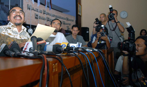 Hal ini diungkapkan siang kemarin (11/4) oleh yang bersangkutan di hadapan para wartawan di gedung Parlemen. Acara yang berlangsung singkat ini(tidak sampai 30 menit)dilakukan tanpa ada tanya jawab, sehingga wartawan berebutan mengejar untuk mewawancarai Arifinto. (mzs)