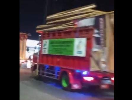 Dalam video selama 35 detik yang beredar, terlihat beberapa truk dan mobil bak terbuka mengangkut baliho bergambar Prabowo-Gibran. Bebera truk merupakan angkutan yang sering digunakan untuk mengangkut tabung gas.
