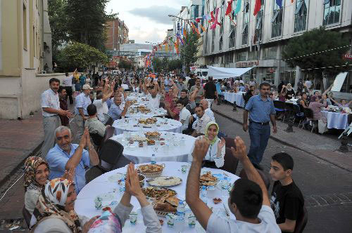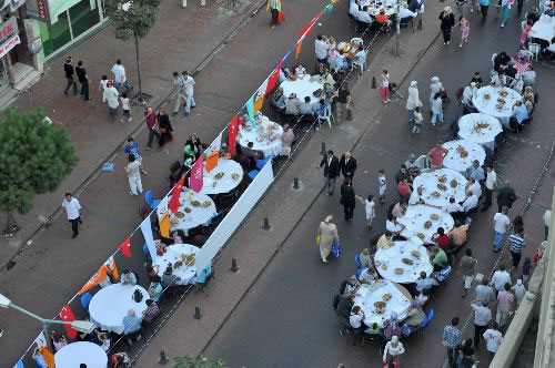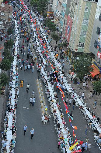 Lebih dari 41 ribu orang berkumpul di sebuah acara buka puasa yang diselenggarakan di kota Esenler Istanbul dengan meja sebanyak 7.020 sepanjang 10 kilometer.