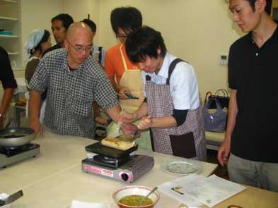 Pembukaan acara kelas masak dimulai dengan pembacaan Al-Qur’an surat Al Hujuraat ayat 13; setelah didahului dengan pengenalan dan ulasan singkat dari pembawa acara bahwa sebagai orang Islam kami mempunyai pedoman kitab suci yang dibaca setiap hari. Terjemahan dari ayat tersebut juga dibacakan dalam bahasa Jepangnya. Sekilas uraian dan penekanan diberikan pada sebagian kandungan makna ayat tersebut, yaitu Allah yang menciptakan manusia berbangsa-bangsa dan bersuku-suku agar mereka saling mengenal. Dan sejalan dengan itu pulalah acara masak diadakan sebagai media untuk saling berkenalan meskipun kami berasal dari bangsa dan agama yang berbeda Setelah itu, acara dilanjutkan dengan perkenalan singkat tentang instruktur masak dan dialog informal sambil menyiapkan bahan-bahan untuk memasak.