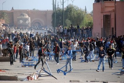 Di ibukota Rabat, beberapa orang dalam kerumunan demonstran melambaikan bendera Tunisia dan Mesir dalam pengakuan mereka atas pemberontakan rakyat yang berhasil menggulingkan presiden kedua negara itu. Sedikitnya 5.000 orang berdemo di Rabat pusat, menurut wartawan Reuters.
