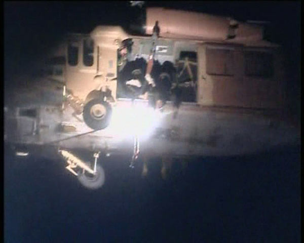 Helikopter tempur Israel mulai mendekati kapal Mavi Marmara.