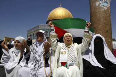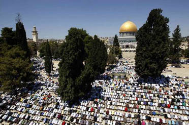 Puluhan ribu Muslim bergerak ke dalam kompleks Masjid Al-Aqsa ketat oleh Israel. Aksi rotes ini juga sekaligus sebagai reaksi atas perundingan perdamaian yang baru dilaksanakan kembali.