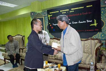Acara penyerahan ini berlangsung sangat akrab dan komunikatif. Pada acara ramah tamah, salah seorang anggota KMM, Kopri Nurzen sempat menyampaikan situasi riil perekonomian anggota KMM. Anggota KMM umumnya berasal dari ekonomi menengah kebawah. Sehingganya rata-rata mereka mandiri dan mesti giat belajar di Mesir, agar kesempatan untuk meraih beasiswa terbuak lebar. Hal ini juga yang membuat mereka terkadang mesti bekerja keras diluar studi untuk memenuhi kebutuhan harian. Kondisi di kampung jauh lebih memperihatinkan, oleh karena itu, bantuan sebaiknya juga disampikan kepada keluarag korban di Tanah Air. Ujar Kopri.