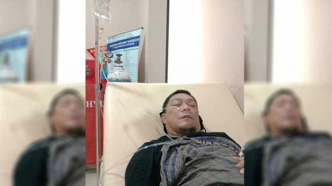 Dalam unggahan foto tersebut, terlihat tangan Yahya Waloni ditempel selang infus dan hidungnya terlihat ada selang oksigen.