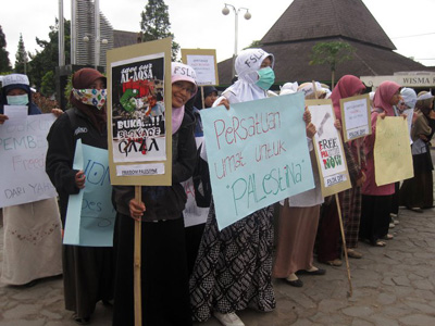 Dilandasi rasa kemanusiaan dan hutang budi sejarah bangsa Indonesia kepada rakyat Palestina, lembaga dakwah kampus (LDK) se-DIY yang tergabung dalam Forum Silaturahim Lembaga Dakwah Kampus (FSLDK) Rabu (13/7) pagi menggelar Aksi Kemanusiaan untuk Palestina sebagai bentuk dukungan terhadap misi kemanusiaan Flytilla dan Freedom Flotilla II untuk membuka blokade Gaza. Masa aksi yang mayoritas aktivis dakwah kampus ini mulai berkumpul di bundaran UGM sejak pukul 07.30 WIB. Aksi yang dihadiri ratusan mahasiswa ini akan melakukan longmarch dimulai dari Bundaran UGM menuju Tugu Jogja.