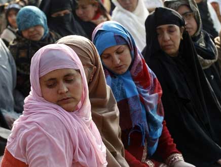 Muslimah Kashmir mengucapkan salam dalam mengakhiri shalat Idul Adha di Srinagar