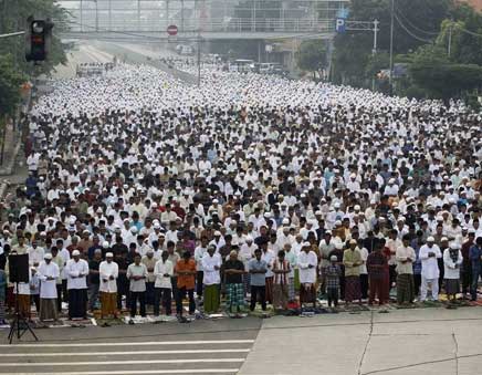 Umat Islam di Jakarta laksanakan shalat Idul Adha di sepanjang jalan kota Jakarta(fq/hrzt)