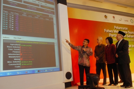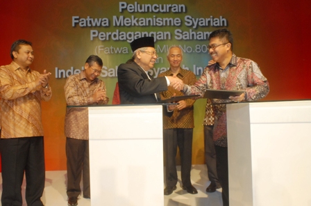 Peluncuran Fatwa Mekanisme Syariah Perdagangan Saham dan PT Bursa Efek Indonesia (BEI) bekerja sama dengan PT Kliring Penjamin Efek Indonesia (KPEI), PT Kustodian Sentral Efek Indonesia (KSEI) telah meluncurkan Fatwa Mekanisme Syariah Perdagangan Saham dan Indeks Saham Syariah Indonesia yang pelaksanaannya bersamaan dengan rangkaian acara Investasi Syariah di Pasar Modal pada Kamis (12/5) di Jakarta.