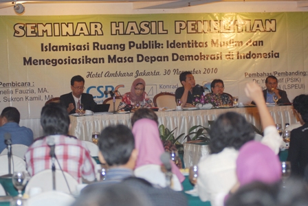 Untuk menggali hasil riset tersebut, maka kemarin pagi (30/11) digelar seminar di Jakarta. Ada empat pembicara dalam acara ini, yaitu: Sukron Kamil, Amelia Fauzia, Yudi Latif dan Fachri Ali. Diantara keempat pembicara tersebut hanya Yudi Latif dan Fachri Ali yang mengkritisi hasil penelitian CSRC ini. Dan Fachri Ali merekomendasikan bahwa penelitian ini harus diulang, karena ada beberapa hal yang belum terpenuhi. (M. Zakir Salmun)