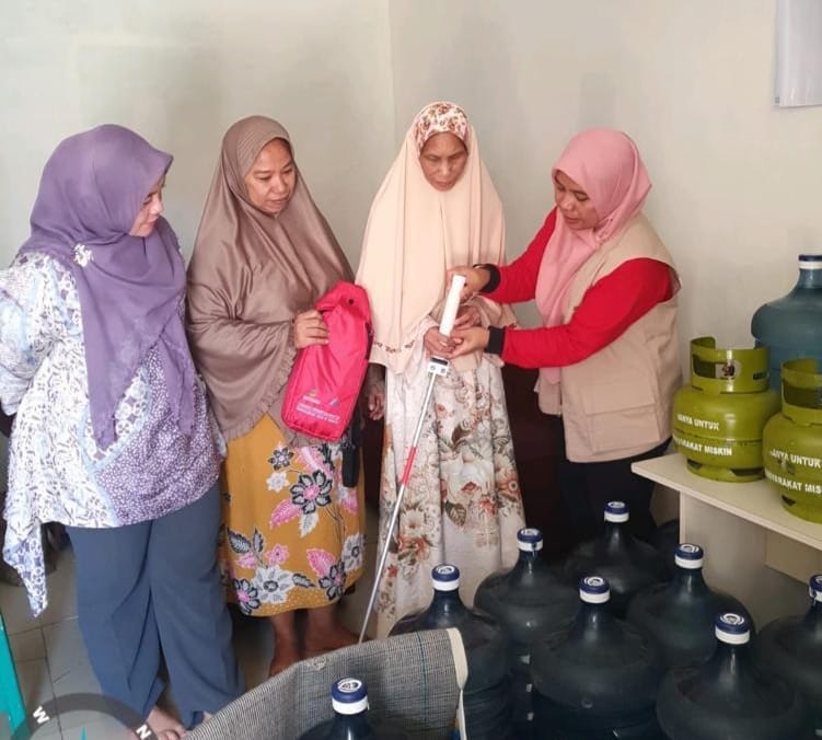 Kemensos juga memberikan pengetahuan orientasi dan mobilitas dengan menggunakan tongkat penuntun adaptif kepada Nengsrih.