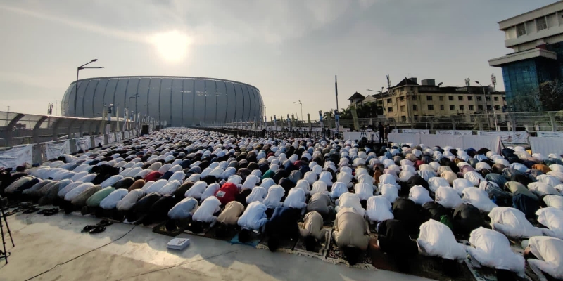 Warga sholat di JIS