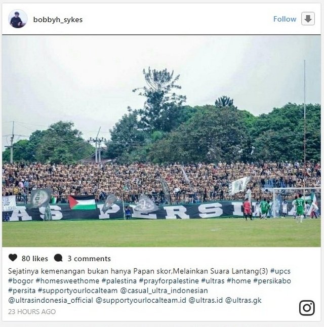 Baik ditunjukan dengan spanduk ataupun aksi koreo yang menyandingkan bendera Indonesia dengan Palestina yang diperlihatkan pendukung setiap klub sepak bola tanah air dalam beberapa pekan terakhir.