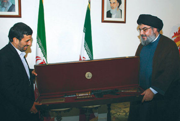Presiden Iran Ahmadinejad untuk pertama kalinya mengunjungi Libanon selatan, dan selain melakukan kunjungan ke tokoh-tokoh Libanon, Ahmadinejad juga bertemu dengan Nasrallah. Hasan Nasrallah dalam pertemuan itu sempat memberikan Ahmadinejad cendera mata berupa senapan yang berhasil dirampas dari tentara Israel sewaktu berlangsungnya perang Hizbullah-Israel.