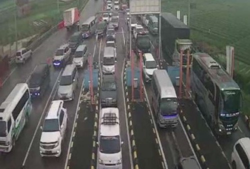 Volume kendaraan pemudik dari Jakarta yang melintas di Exit Tol Pejagan terus mengalami peningkatan pada Rabu, 27 April 2022.--
