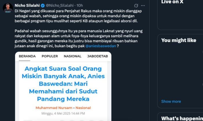 Melalui utasannya di X @aniesbaswedan, ia memberikan jawaban-jawaban yang beberapa diambil dari sudut pandang orang miskin.