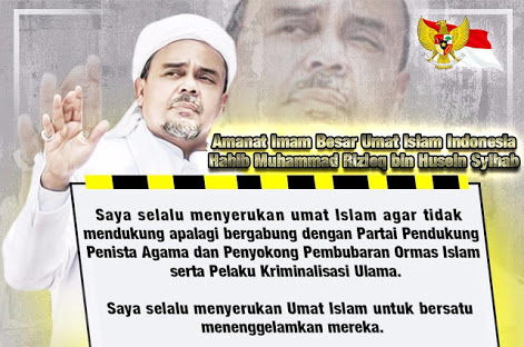 Eramuslim - Ketua Umum Persaudaraan Alumni (PA) 212 Slamet Maarif menyatakan, Habib Rizieq Shihab akan tetap konsisten merusak suara PDIP meski ada wacana pertemuan antara pimpinan Front Pembela Islam (FPI) itu dengan cawapres 2019 Ma'ruf Amin. Sikap Habib Rizieq dalam politik, tegas Slamet, sangat jelas.