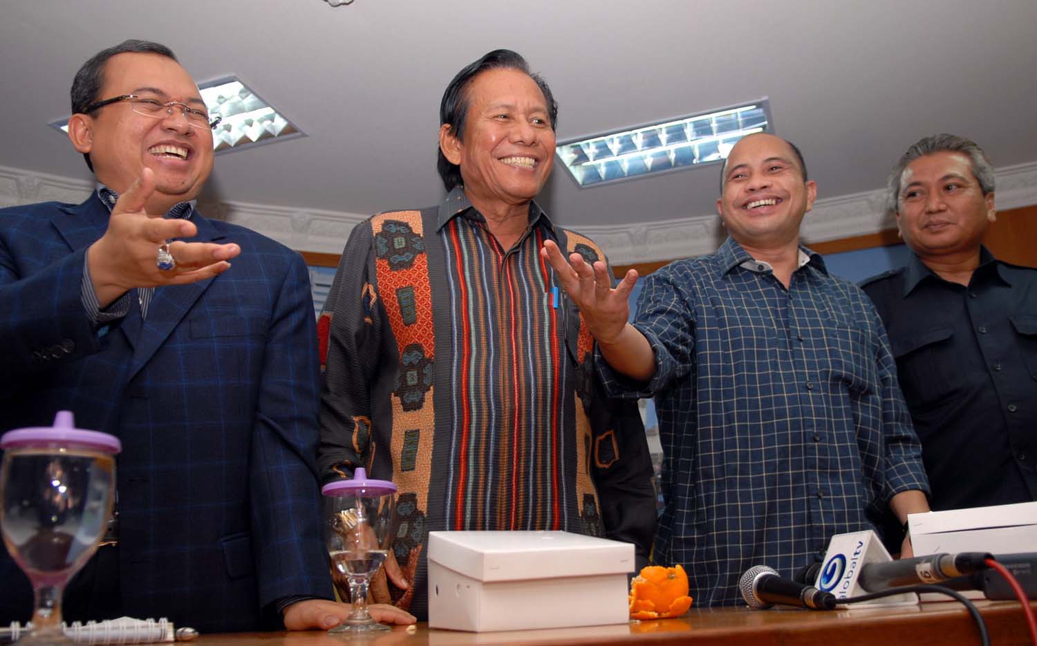 Acara yang bertajuk"Dialektika Demokrasi yang mengambil tema "Partai Politik Bicara Maraknya Radikalisme", menghadirkan wakil ketua DPR RI, Priyo Budi Santoso (kiri), ketua Fraksi Partai Demokrat DPR RI, Djafar Hafsah (ke-2 kiri), ketua Fraksi PKB DPR RI, Marwan Ja'far (ke-2 kanan) dan mantan menteri peningkatan produksi NII, Imam Supriyanto (kanan).