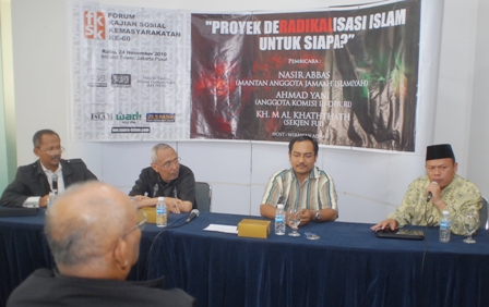 Siang Rabu lalu Forum Kajian Sosial Kemasyarakatan kembali digelar, setelah beberapa lama fakum. Siang itu tema yang diambil adalah "Proyek Deradikalisasi Islam untuk Siapa?" Selama ini ummat Islam selalu dipojokkan bahkan dituduh sebagai pelakunya, bila ada insiden peledakan atau kasus-kasus sara di Indonesia maupun di dunia.