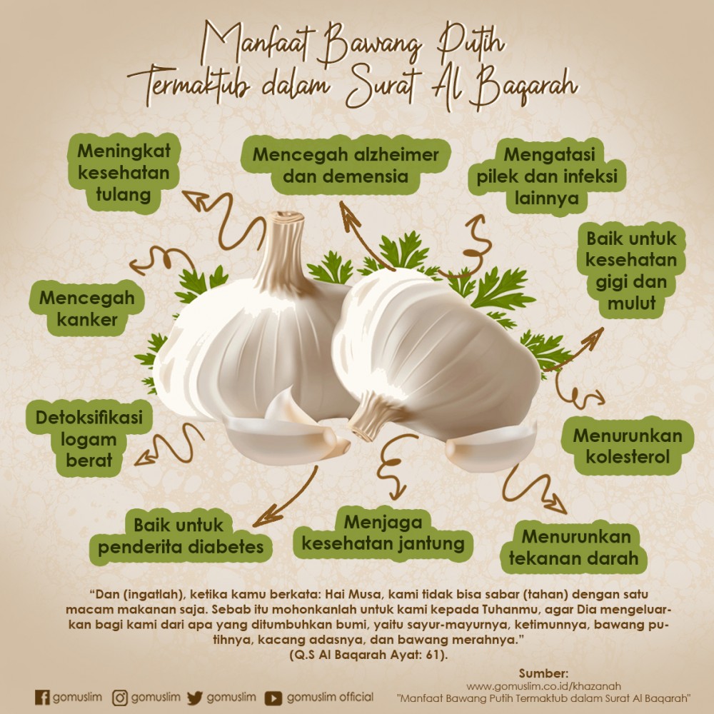 Eramuslim – Ilmu pengetahuan telah membuktikan bahwa bawang putih memiliki segudang khasiat untuk obat. Tapi siapa sangka belasan abad silam manfaat bawang putih ini telah dijelaskan dalam Alquran dan hadits Nabi SAW.