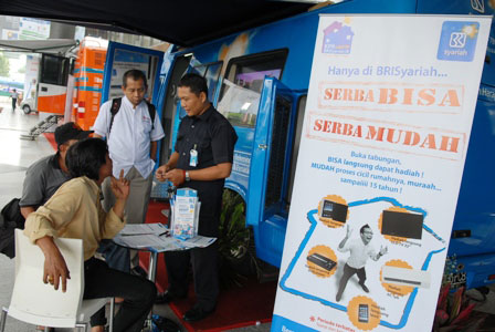 Tampak dalam gambar, seorang petugas dari BRI Syariah sedang melayani calon nasabah baru yang berminat menabung di bank tersebut.