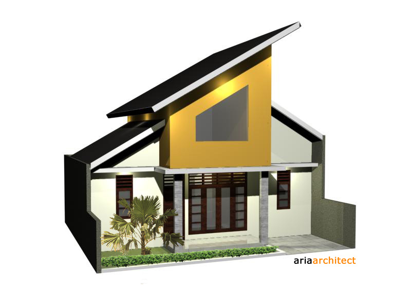 Bentuk bangunan tetap mempertahankan kesederhanaan dengan tampilan yang modern, konsep 3 bagian tetap diperlihatkan dengan bentuk atap terpisah dengan ketinggian yang berbeda. Bagian kiri beratap paling rendah disusul dengan bagian kanan yang memiliki selisih ketinggian kurang lebih 1 m dan bagian tengah yang memiliki atap tertinggi dengan selisih ketinggian sekitar 2.5 m. Dengan adanya ketinggian atap yang berbeda ini maka ketinggian plafond juga bervariasi sehingga ruangan lebih terkesan luas terutama pada ruang tamu dan ruang keluarga. Anda juga dapat memanfaatkan ketinggian atap tersebut untuk membuat ruang mezanin yang dapat digunakan untuk ruang penyimpanan atau ruang lain yang dibutuhkan.