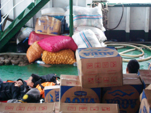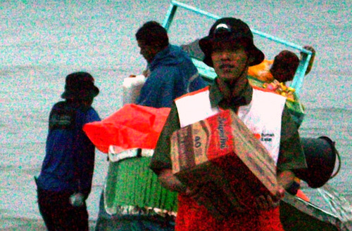 korban juga membantu logistisk barang bantuan ke pulau-pulau tempat