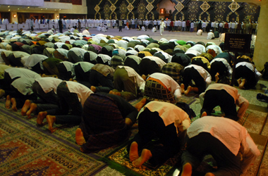 Tak lama kemudian adzan isya berkumandang, reporter eramuslim menuju ruang sholat di lantai satu di shaf terdepan, tentunya tak lupa untuk sholat sunnah. Jam 19.15 sholat Isya pun ditegakkan. Tilawah atau bacaan dari imam yang memimpin sholat terasa begitu fasih didengar, selain merdu juga jelas setiap huruf yang dikeluarkan, sehingga yang mendengarkan jadi lebih khusyu'. Mendengar langgam bacaan imam jadi teringat ketika sholat di masjidil haram.