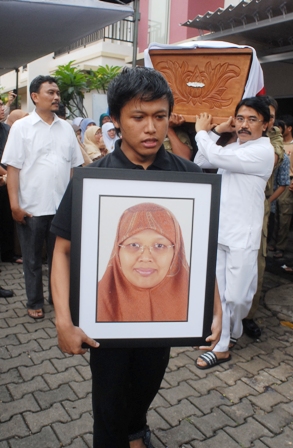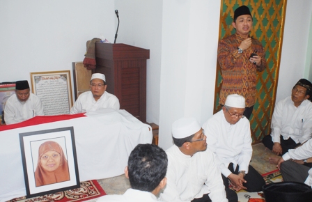 Sebelum jenazah dibawa ke mobil ada acara sambutan dari keluarga yang disampaikan oleh petinggi PKS, Hilmi Aminuddin dan wakil dari DPR yang disampaikan Wakil Ketua DPR RI, Anis Matta. “Almarhumah adalah kader terbaik jama’ah PKS yang telah menunaikan tugas dakwahnya seperti ayat yang tadi saya bacakan (QS. Al-Ahzab [33] : 23, red.) man qodhoo nahbahu u(orang yang telah wafat/gugur) dan kita adalah waminhum man yantadzir (dan di antara mereka ada yang menunggu-nunggu)”, ujar Hilmi dalam sambutannya. Pukul 13 lewat, jenazah almarhumah dimasukkan ke dalam mobil ambulance untuk dibawa ketempat peristirahatan terakhirnya di pemakaman di daerah Tangerang. Almarhumah meninggalkan seorang suami dan 13 anak.