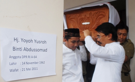 Usai rapat saya pun langsung bergegas pulang untuk mengambil perlengkapan “perang”saya menuju rumah duka di Komplek Perumahan DPR RI di Kalibata untuk mengabadikan peristiwa tersebut. Ternyata di Kalibata sudah dipadati para pelayat yang umumnya kader Partai Keadilan Sejahtera yang sudah menunggu jenazah aktivis dakwah da’iah ini. Diantara mereka hadir pula Menteri Agama RI Suryadharma Ali, Menteri Sosial Salim Segaf Al Jufri dan Menteri Riset dan Teknologi Suharna serta mantan Menteri Pemuda dan Olahraga Adiyaksa Dault. Tak lupa tokoh sentral PKS yaitu Hilmi Aminuddin. Ketua Majelis Syuro, dan Anis Matta beserta para anggota dewan dari fraksi PKS. Mereka berbaur denga jama’ah yang memadati masjid Komplek DPR dengan raut muka kesedihan, merasa kehilangan seorang kader dakwahnya.