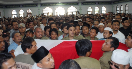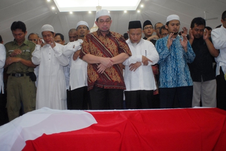 Menjelang dzuhur, usai dimandikan dan dikafani, jenazah pun diusung dari rumah duka ke dalam masjid untuk disholati oleh para kader PKS dan pelayat lainnya yang sudah menunggu sejak pagi. Sholat dilakukan dalam 2 kloter, karena tempat yang tidak sanggup menampung jama’ah yang membludak, yang berdatangan dari berbagai penjuru Jabodetabek.