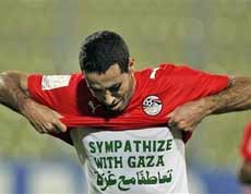 Dalam pertandingan lainnya, di waktu terjadinya pemboikotan Israel atas muslim di Gaza. Abu Treka juga menunjukkan simpatinya. Kali ini kaos dalam yang ia kenakan bertuliskan "Ta'athufan ma'a Gazza, Sympathize with Gaza". Yang berujung dengan penghapusan foto ekspresi Abu Treka saat itu dari situs Google, karena dianggap kental akan kepentingan politik.