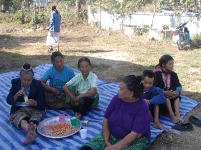 Perempuan suku Hmong sedang menunggu daging hewan Qurban di Desa Ban Sen Sai Pha Yao Thailand Utara